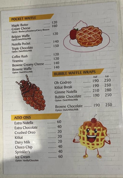 But that's just the beginning! Their pocket waffles are a must-try, with varieties ranging from Nutella Pocket to Triple Chocolate, ready to satisfy any sweet craving. The playful add-ons like extra Nutella or crushed Oreo make each dish an adventure of flavors.